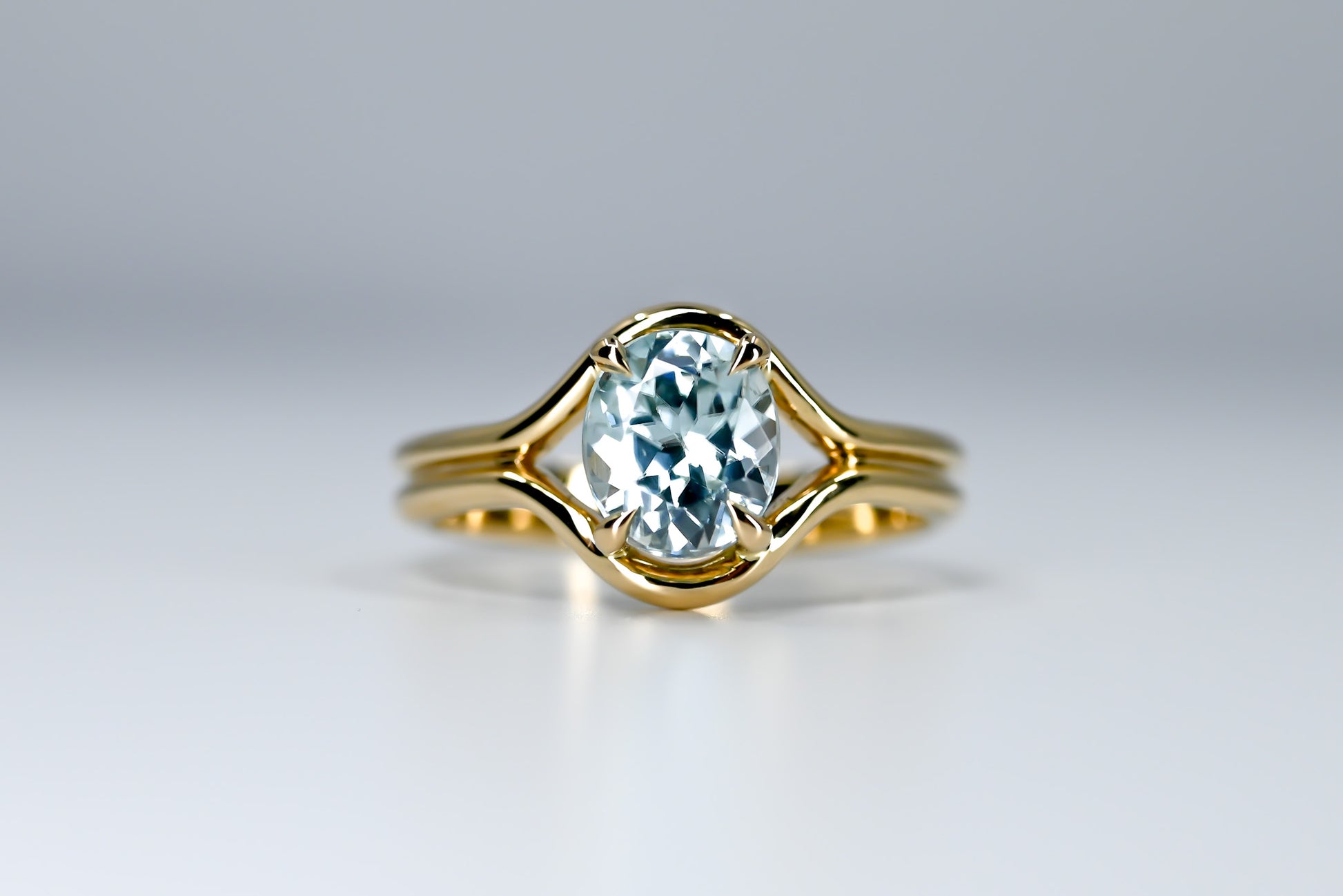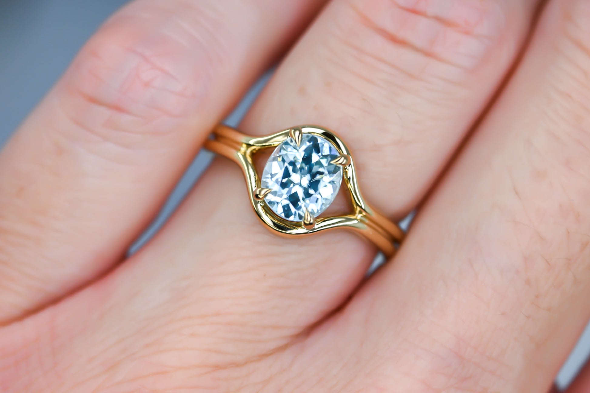 Bague en or jaune 14k et zircon oval naturel.