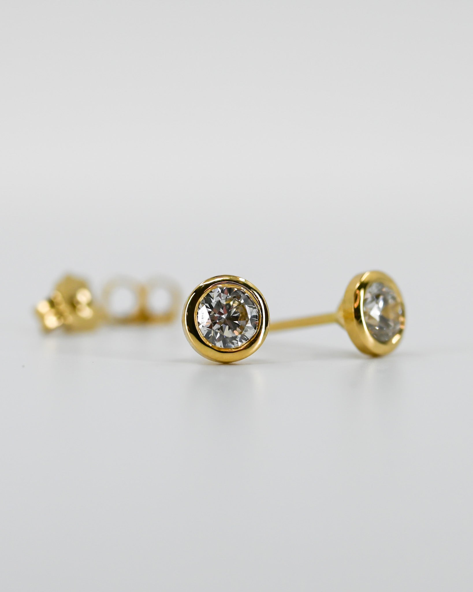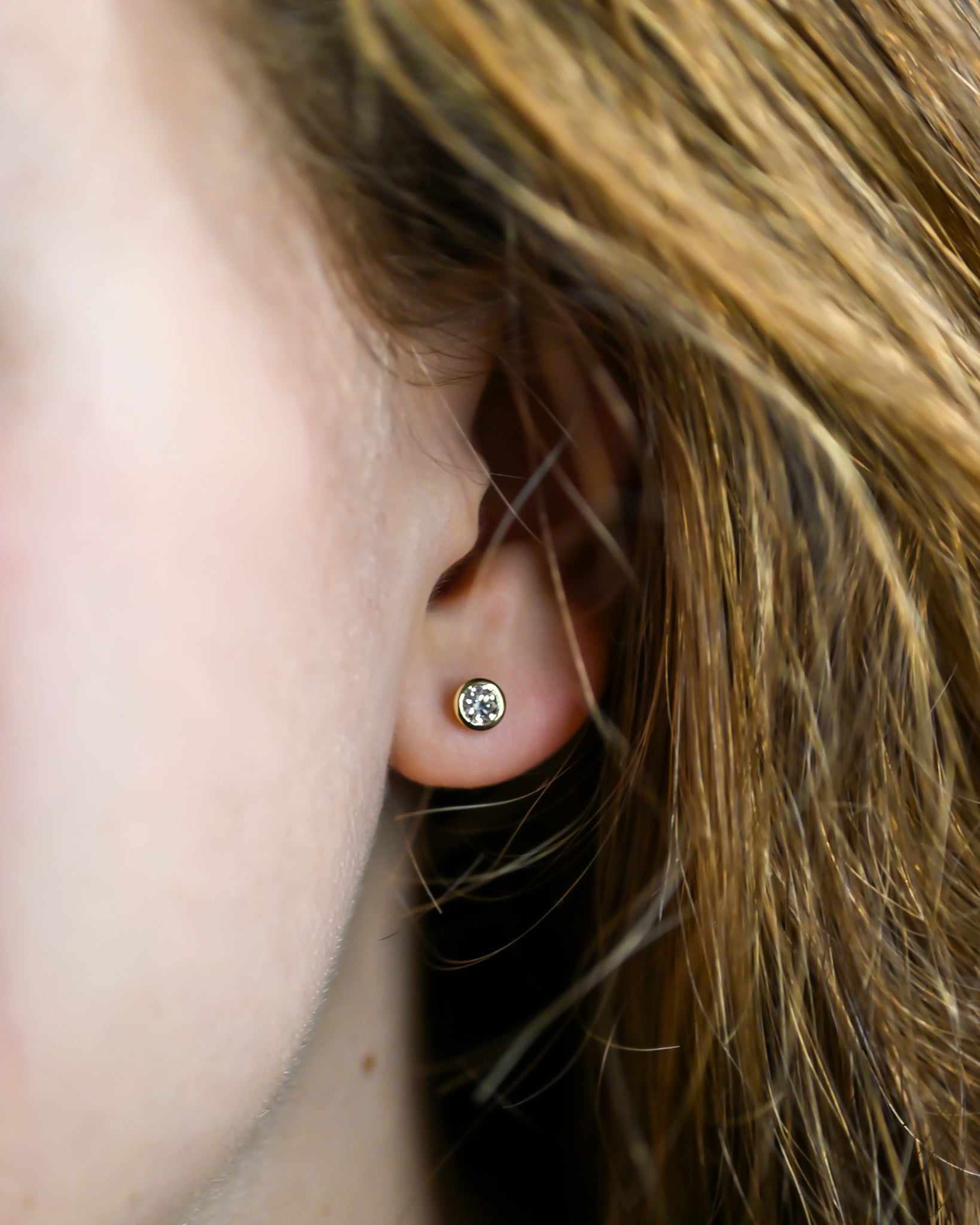 Solides boucles d'oreilles de diamants de laboratoire dans un serti martini clos en or 14k.
