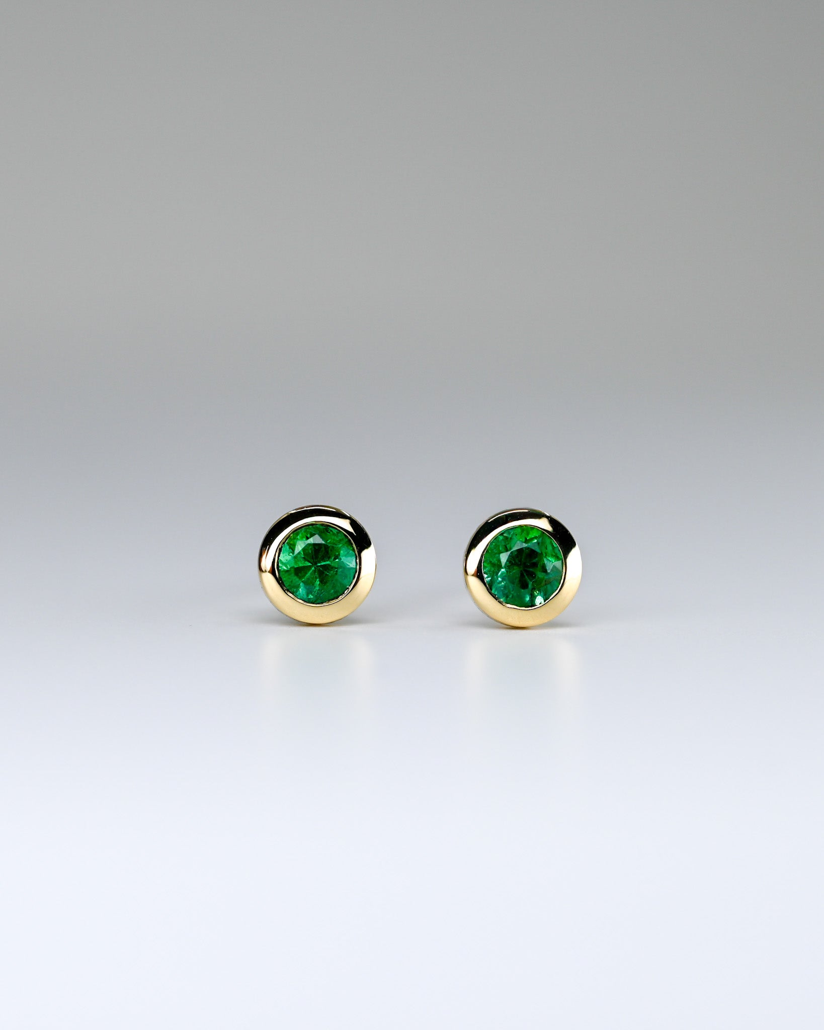 Adorables boucles d'oreilles d'émeraudes dans un serti martini clos en or 14k.