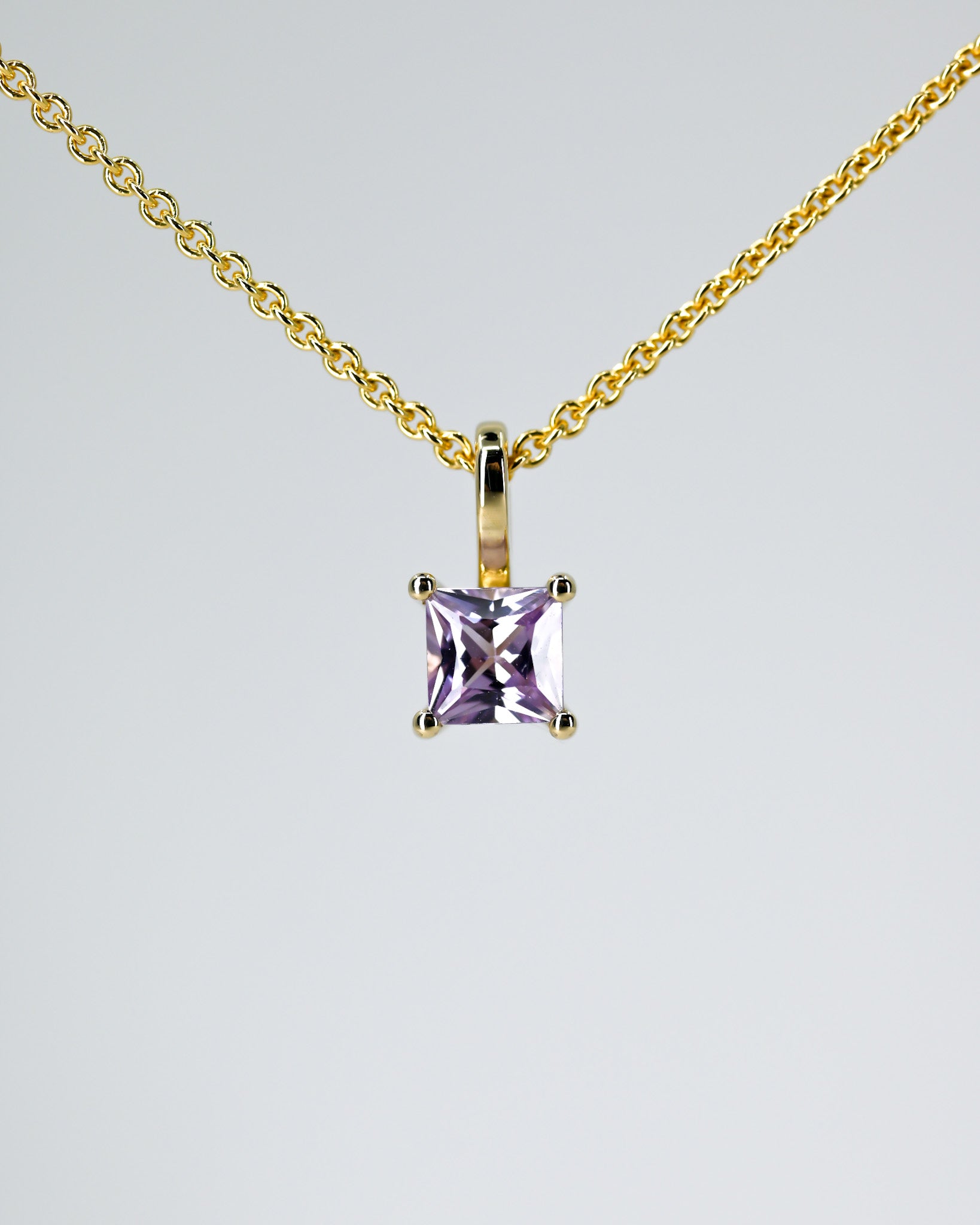 Pendentif en or jaune 10k serti d'un joli saphir carré rose/mauve pâle.